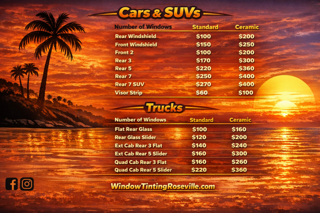 At Window Tinting Roseville CA, we’ve been serving the Roseville community for over 20 years, helping drivers get the clean look, comfort, and protection they want from professional auto window tinting in Roseville CA.